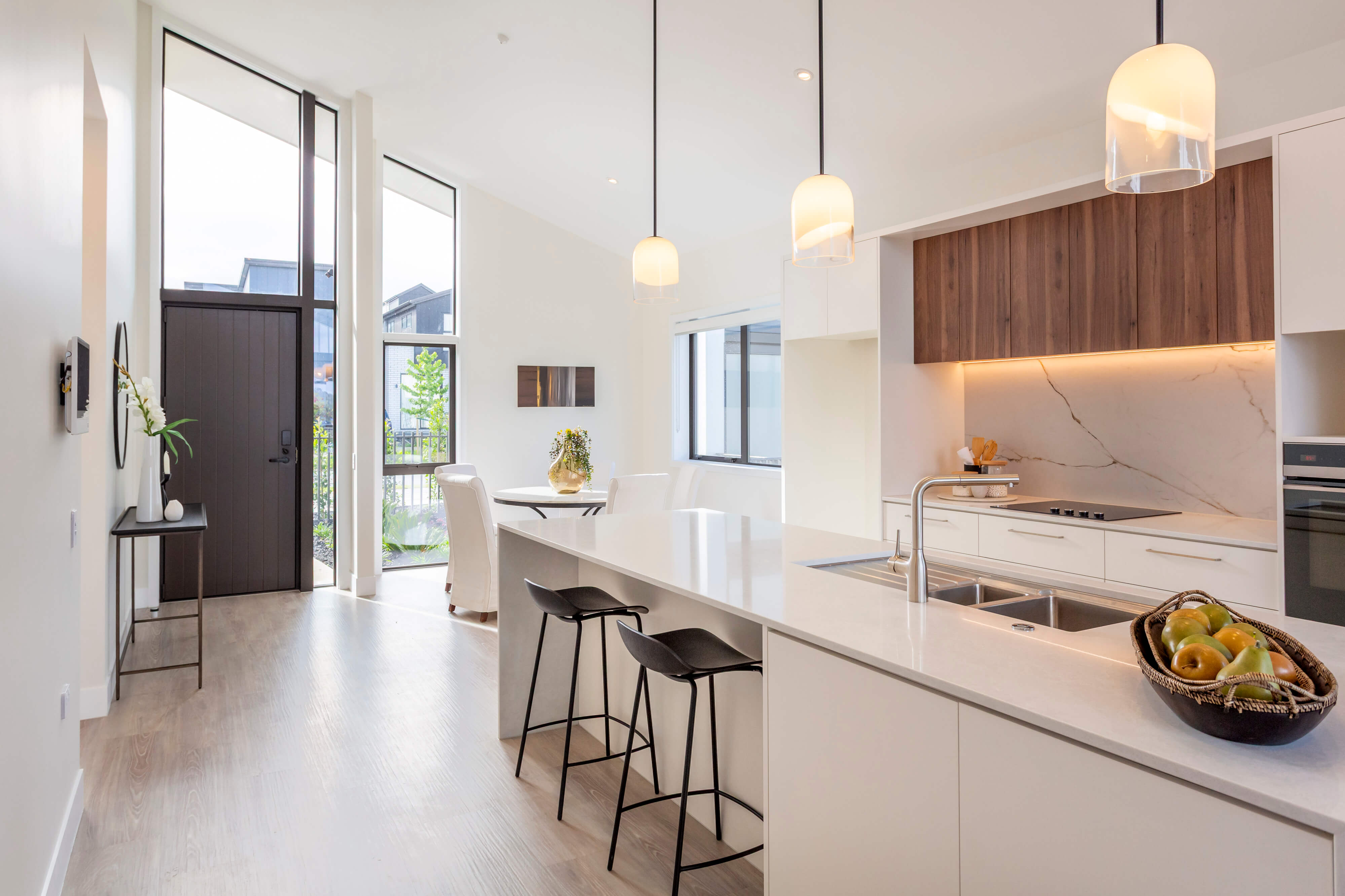 A villa is a one, two, or three-bedroom standalone single-level home with a private garden, patio, or deck, and an internally accessed garage. An apartment is a one, two, or three-bedroom self-contained unit in the Nikau or Rimu buildings, and underground carparking.