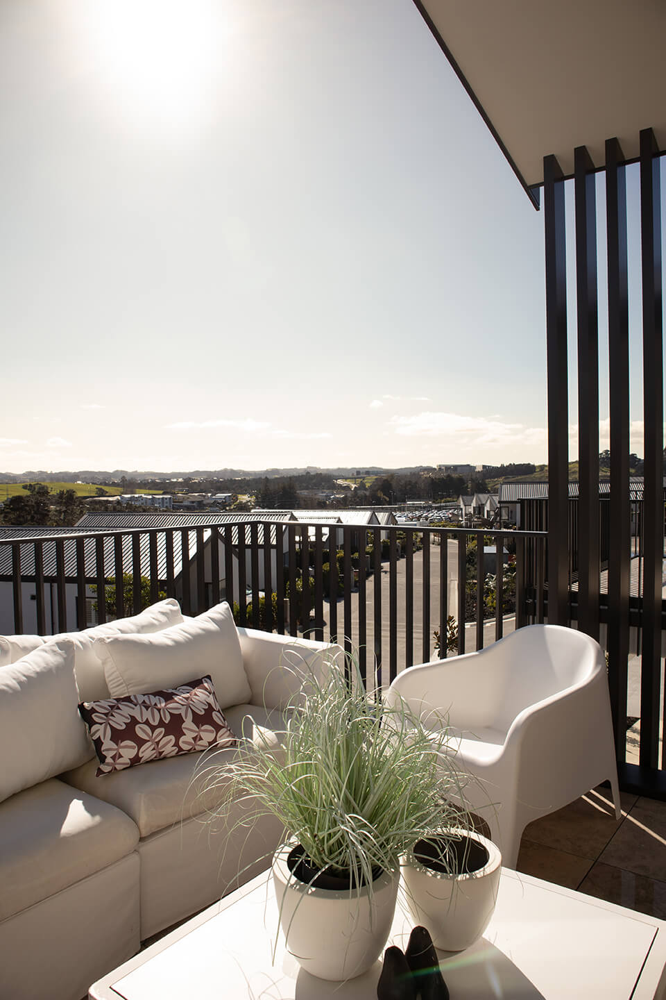 A villa is a one, two, or three-bedroom standalone single-level home with a private garden, patio, or deck, and an internally accessed garage. An apartment is a one, two, or three-bedroom self-contained unit in the Nikau or Rimu buildings, and underground carparking.
