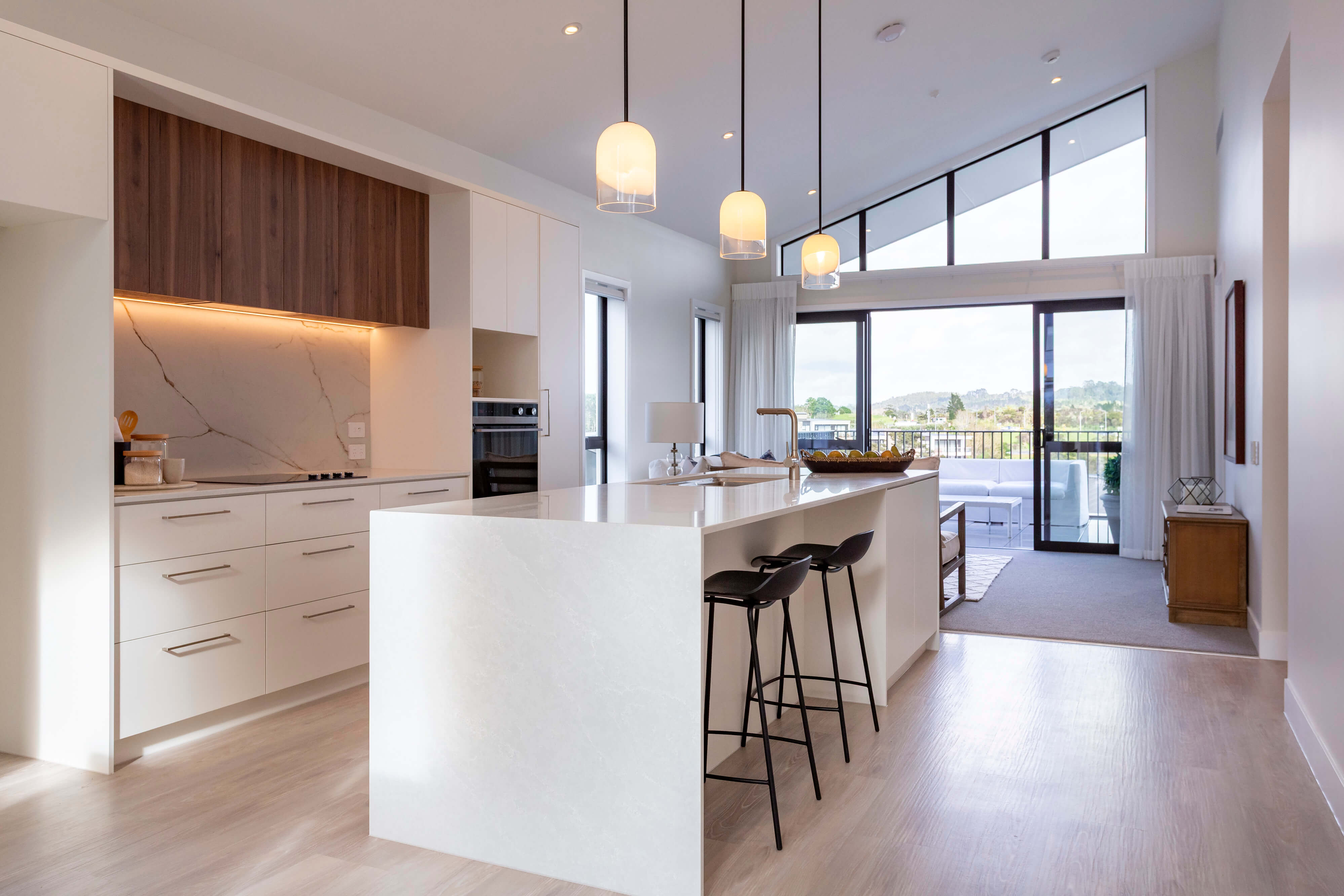 A villa is a one, two, or three-bedroom standalone single-level home with a private garden, patio, or deck, and an internally accessed garage. An apartment is a one, two, or three-bedroom self-contained unit in the Nikau or Rimu buildings, and underground carparking.